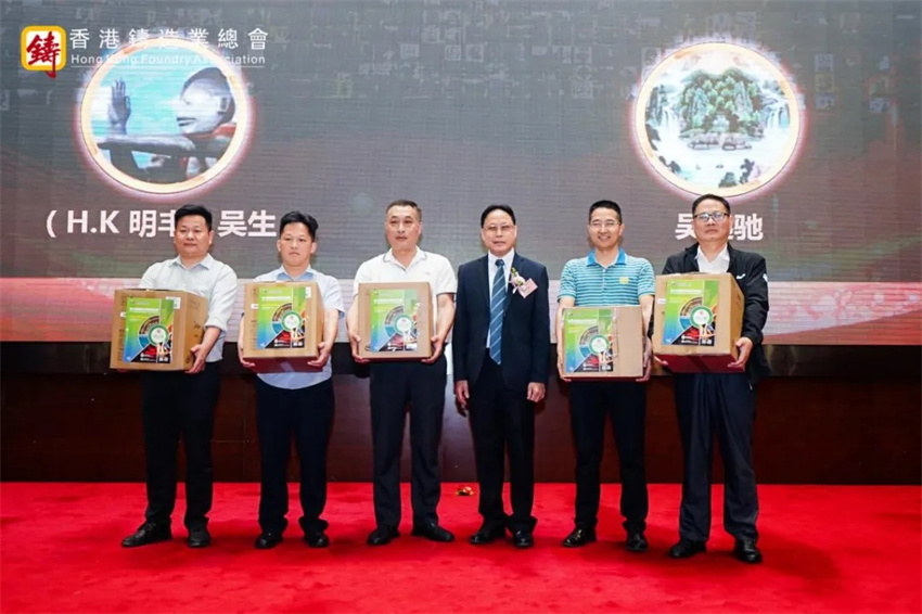 此次活动的成功举办,离不开众多赞助商的慷慨支持。致辞结束后,香港铸造业总会会长梁诗雅女士为海兴集团(国际)有限公司[敏感词]赞助商颁奖;常务副会长吴健宏为银牌赞助商讯通展览公司颁奖;前会长蔡子芳先生为力劲机械国际有限公司、国泰达鸣精密科技集团有限公司、宏丰香港集团有限公司和东莞市力泰精工科技有限公司四家铜牌赞助商颁奖。